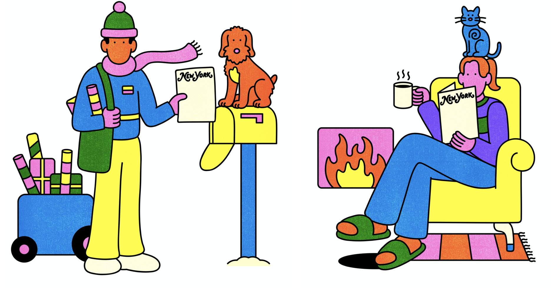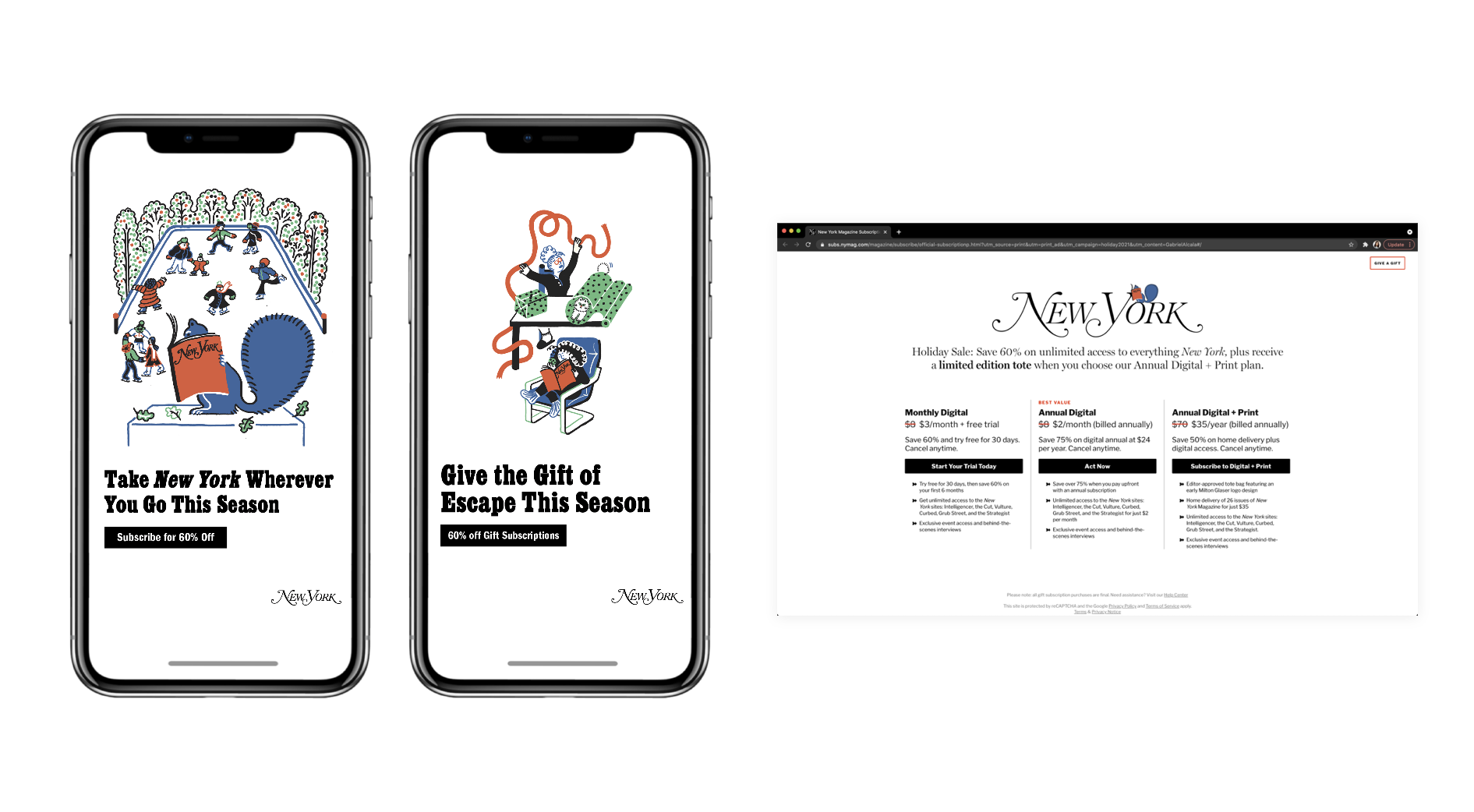 New York Magazine was looking to commission illustrations for their 2021 Holiday Campaign. We worked with Gabe Alcala, Jonell Joshua, and Sarah Mazzetti to bring the campaign to life.